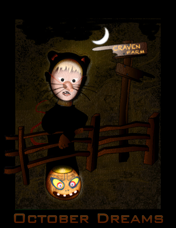 While this was more in line with the mood of the poem, and I loved the imagery - it didn't fit the location of the action which at this point takes place on a front porch the night of Halloween. (Unfortunately the whole landscape and set of objects sound more like a castle than the small doorstep of a single family home, and I just didn't feel it worked).